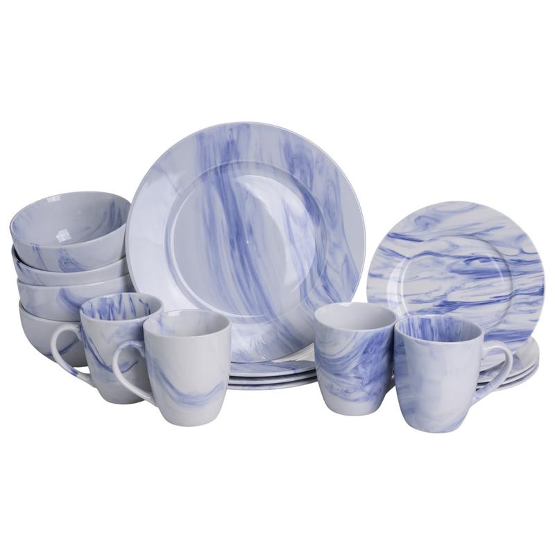 Столовый набор посуды тарелок и чашек 16 предметов на 4 персоны marble clara фарфоровый си...