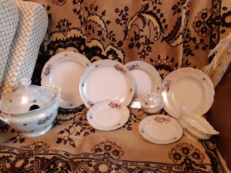 Сервиз столовый, 1й сорт, перламутровый, Коростенский фарфоровый завод 49 предметов, большая часть из которых не использовалась. Тарелка 25 см - 11 шт Тарелка глубокая 25 см - 7 шт. Тарелка 20 см - 12 шт Тарелка 18 см - 12 шт Блюдо 31 см - 1 шт Блюдо 28 см - 1 шт Овальное блюдо - 1 шт. Супница - 1 шт Селедочница - 1 шт. Соусница - 1 шт. Масленка - 1 шт. Обращайтесь, смотрите другие мои объявления