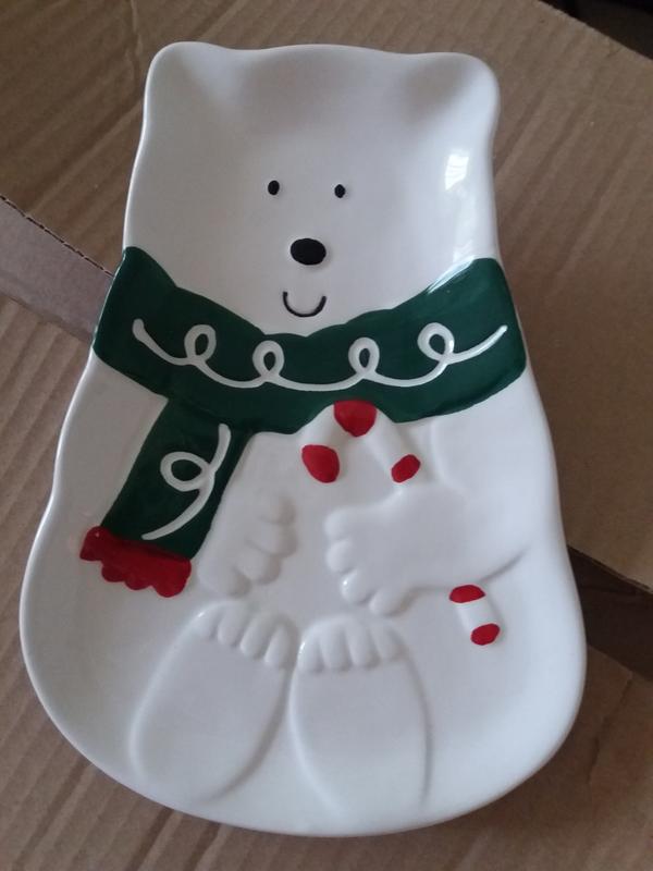 Очень красивое сервировочное блюдо "Белый медвель с шарфиком". Будет прекрасным украшением любого стола, особенно зимой. Блюдо привезено с Болгарии. Размеры смотрите на фото. Доставка: Оплата на карту Приват Банка + 1 % от суммы (комиссия банка за снятие наличных денег с карты)