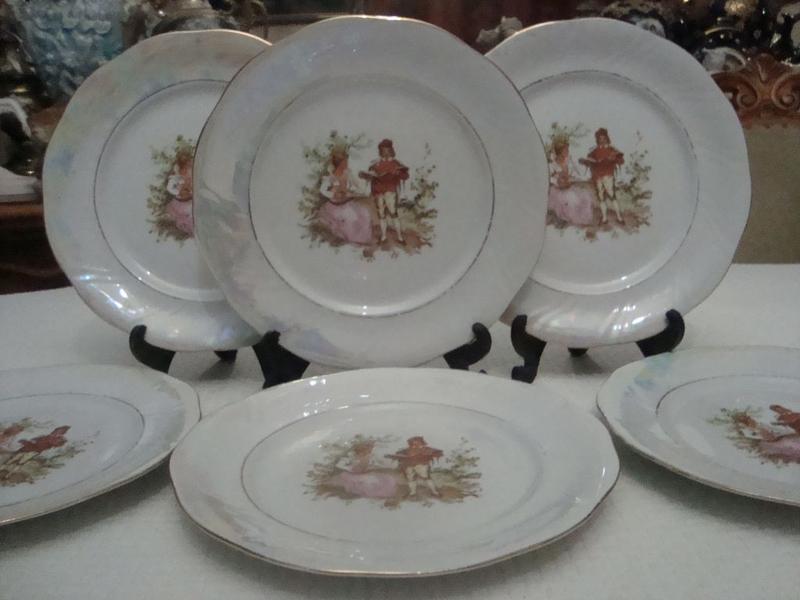 Старинные Тарелки Набор 6 шт фарфор Польша Chodziez Без сколов и трещин Потертость перламутра Диаметр 23.5 см