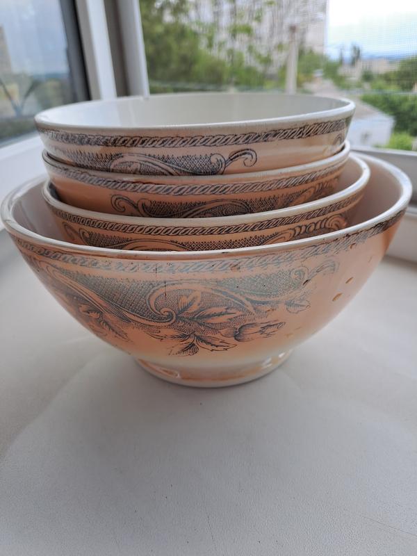 Набор качественной посуды/салатников,времён СССР, фарфоро-фаянсового завода Буды, само состояние идеальное,чистенькие ,без мелких трещин, рисунок стойкий,пользовались раза 2/3, в основном сервантное хранение,но есть маленький нюанс,указала на 2х последних фото, такое впечатление,что это брак,в цене нюанс заложен, 4 глубоких разного диаметра салатника,2 одинаковые,размеры на фото. Продаю одним лотом,цена указана за 1 набор.(4 шт).отправляю только новой почтой ,упаковываю там же,учитывайте это.!