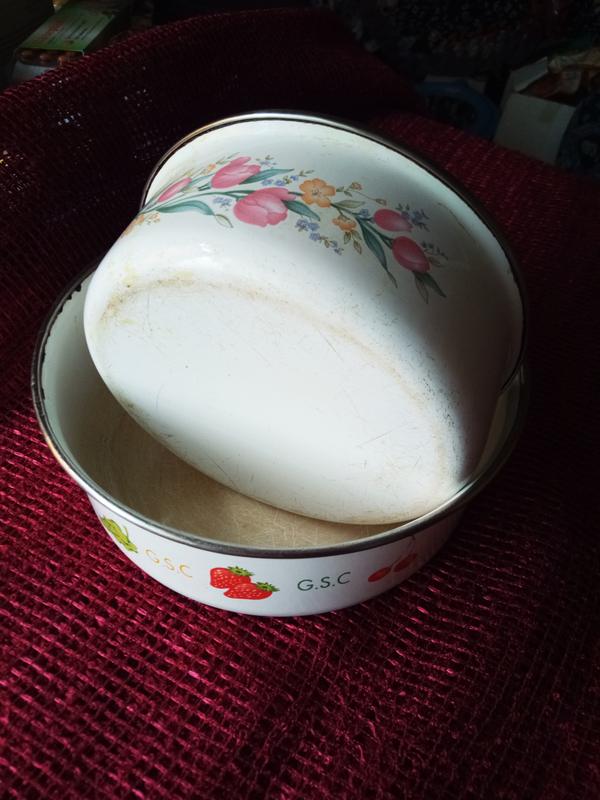 Тип посуду: Миски Матеріал: Емальована сталь цена за 2 шт набір мисок з 90-х минулого століття-купувалися в Еміратах. легкий метал емальований знайшлася в коморі-довгі роки зберігалася без потреби якщо чесно то в порядок не приводила (мити з собою і оцтом-буде як нова)-немає часу метал радянського періоду зроблю додатково фото пишіть питайте. відповідаю протягом доби пересилання новою поштою після оплати=замовлення та безтурботна оплата є у мене багато різних аксесуарів у моїх оголошеннях купуючи дещо ви заощаджуєте на пересиланні через кнопку "купити" можна сформувати в одне замовлення та одну пересилку