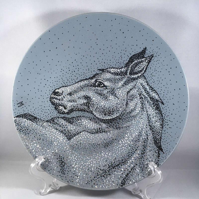 Оригинальная керамическая тарелка с рисунком ручные работы. Это множество точек, которые складываются в цельную картину и мы видим зайца... или рыбку,. или кошачьи лапки. Капочки эти нанесены пищевыми акриловыми фабрами, и поэтому безопасны для здоровья. Конечно, ижть жареный картофель с салом с такои тарелки не будешь, а вот сырную или фруктовую нарезку - легко. Орешки, печенье, сухофрукты - это далеко не полный перечень продуктов, для которых такая красота может быть использована. Или просто поставить и любоваться) Качественная керамика довершает образ. Диаметр - 20см. Тарелку можно осторожно мыть теплой водой с мылом. В посудомиечную машину закладывать нельзя! Крепление на обороте стороне отсутствует! Тарелка продается БЕЗ подставки!