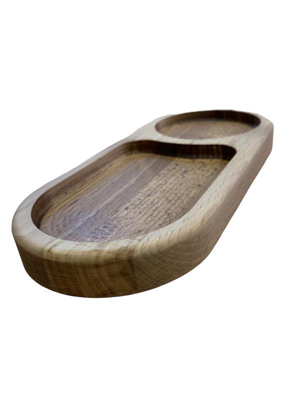 Тип посуду: Менажниці Кілька примірників у наявності менажниця для подавання десерту матеріал бук, дуб просочення масло. вишукана підставка, він же піднос під каву. Підставка виконана з натуральної деревини володіє неймовірною природною красою зрощеного дерева. Виріб володіє також стійкістю до вологи, прекрасно переносить вологий догляд. Навіть при активному використанні підставка буде вірою і правдою служити вам тривалий час, радуючи очі своїми надзвичайно красивими декоративними якостями. Форма: Прямокутна Матеріал: Дерево Кількість секцій: 2 Ширина: 100.0 мм Довжина: 230.0 мм Діаметр: 80.0 мм Країна виробник: Україна