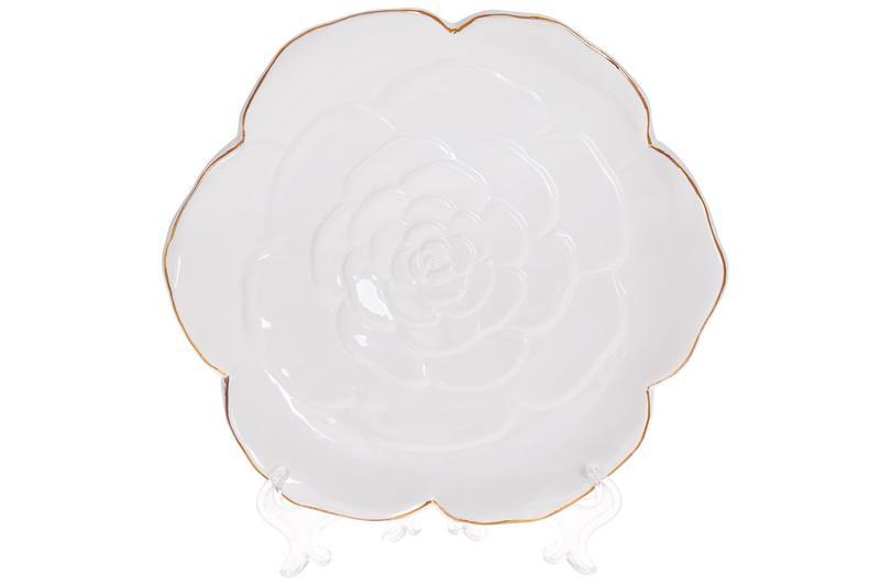 Кілька примірників у наявності Набір (4шт.) тарілок керамічних сервірувальних Rose 23см, колір - білий з золотом Розмір 22.7*21.5*3.3см Ціна вказана за набір 4 шт. Продається гуртом та в роздріб з доставкою по Україні Форма: Фігурна Матеріал: Кераміка Довжина: 227.0 мм Ширина: 215.0 мм Висота: 33.0 мм Колір: Білий Кількість в наборі: 4 шт. Країна виробник: Україна