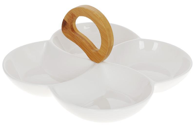 Тип посуду: Менажниці Кілька примірників у наявності Мінажниця порцелянова Naturel, 25см Розмір 25*25*3см Продається гуртом та в роздріб з доставкою по Україні Матеріал: Порцеляна Колір: Білий Країна виробник: Україна Підходить для миття в посудомийній машині: Так Зберігання в холодильнику: Так