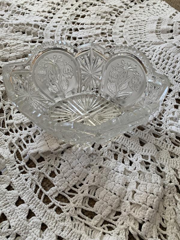 Изысканный интересный, для ценителей посуды начала80х, четкие грани, красивый вызерунок,, качественная изысканная отделка, качественный дорогой хрусталь, не мутный, не колотый Высота9-11см Длина днища 14см Ширина днища 10,5 Ширина верху17 Длина верха 24см