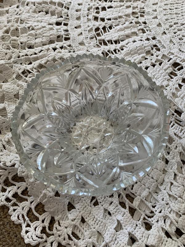 Кристальная посуда, начале 80х гг. Красивая изысканная вещь Идеальный, не мутное, не колотое, без нюансов Качественный дорогой материал, качественная заводская отделка, четкие грани, очень красивый рисунок Высота9см Диаметр днища 8мм Диаметр верха 21см