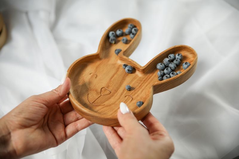 Дитяча тарілка з дерева ясена, тарілка зайченя оригінальна для дітей