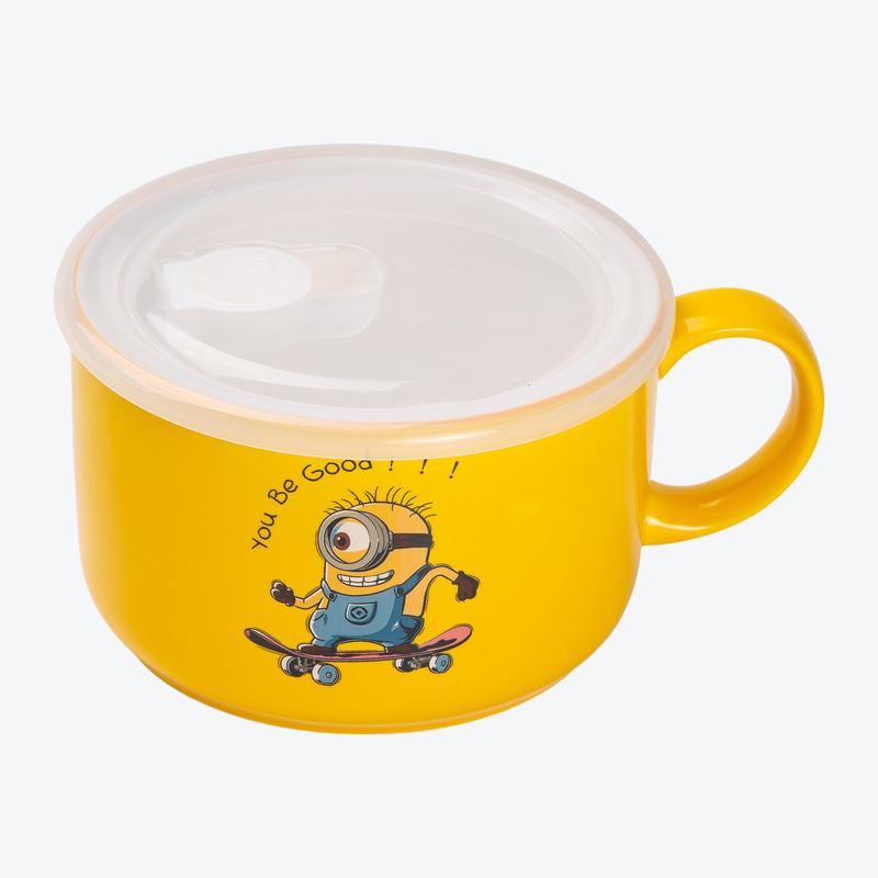 Миска керамическая с крышкой для лапши супа 900 мл удобна для хранения пищи в пути ku-22