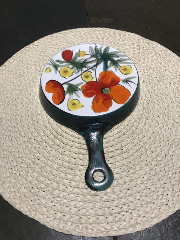 Дуже яскрава та оригінальна керамічна пательня для подачі страв, повністю ручний розпис, можна використовувати і як настінний декор. Без пошкоджень. Відправка після оплати.