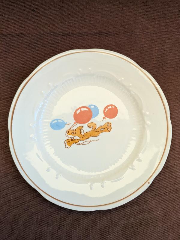 Тарелочка фарфоровая десертная детская с песиком барановка