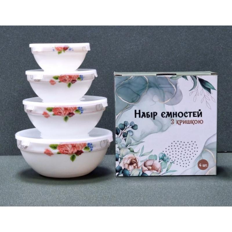 Набір салатників склокерамічний "рожева симфонія" з кришками (4шт) 30054-1306/s&t