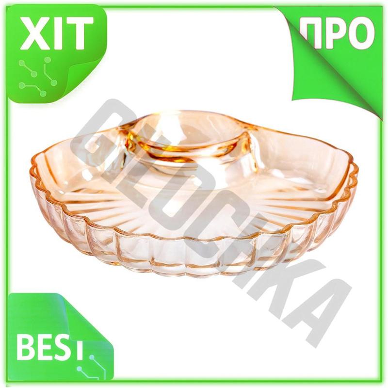 Ve стеклянное блюдо с соусником new version 21х19х3 см коричневая тарелка для суши десертн...