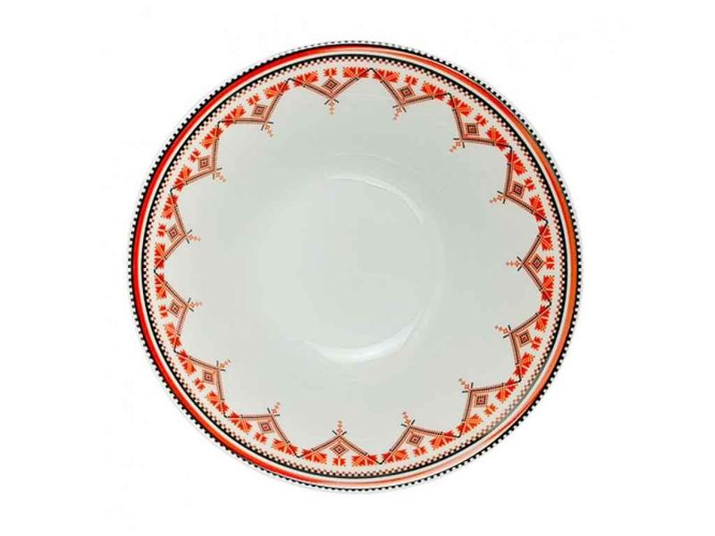 Тип - Салатник Діаметр, см – 15,2 Матеріал - кераміка Основний колір - Білий Країна-виробник товару - Китай Можна мити в посудомийній машині. 30005-005 Салатник 7 Вишиванка червоний ромб