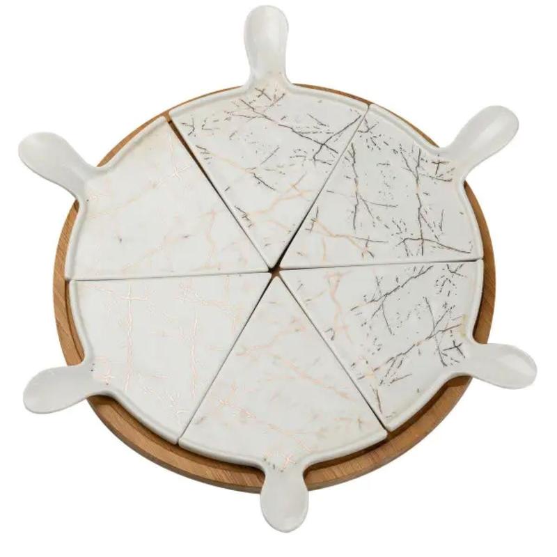 Тарелка для пиццы 28 см фарфоровая с бамбуковой вращающейся подставкой, секционная hp1213