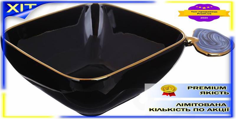 Dm салатница фарфоровая gold спецификация 2.2 line 1500мл черная квадратная для подачи сал...