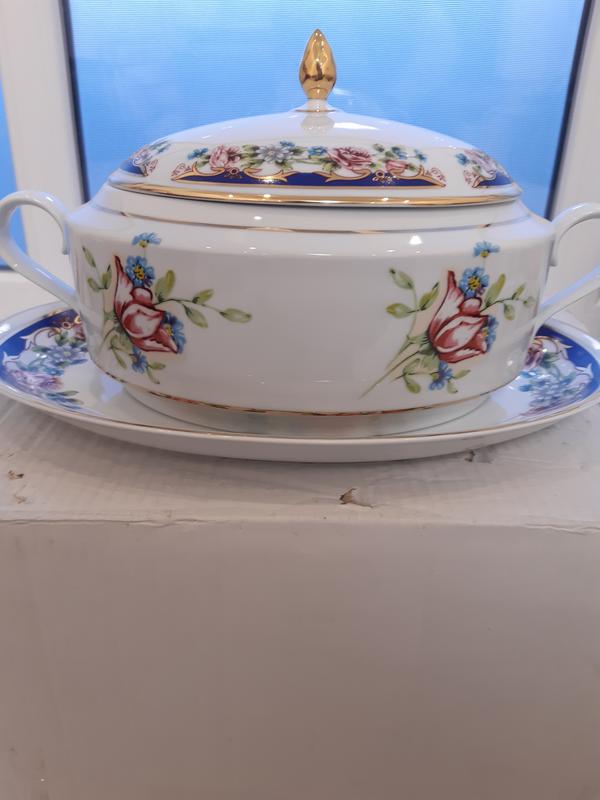 Оригінальна супниця.Ідеальний стан.Стан нової.Розміри блюда 34×25 см.Супниця-висота 12 см,ширина-34×20см.Сервантне зберігання.Насичені кольори..Виробництво Португалія.
