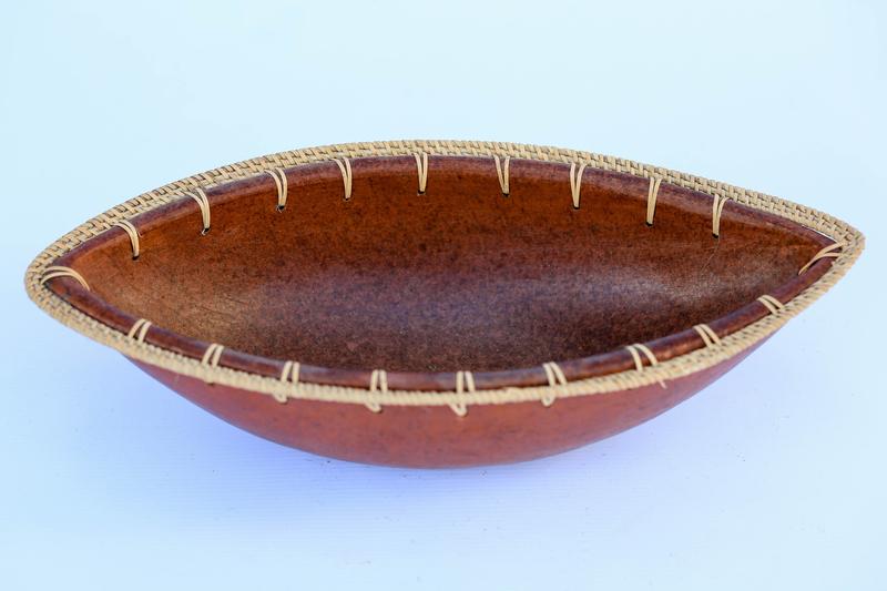 Красивая и необычная керамическая миска,будет дарить Вам настроение каждый день и напоминать о путешествиях в экзотические страны. Материал:глина,ротанг.Цвет:светло-коричневый.Размер:длина 42см.Страна производитель - Индонезия, ручная работа. По запросу высылаем фото и видео "в живую". Отправка в день заказа!