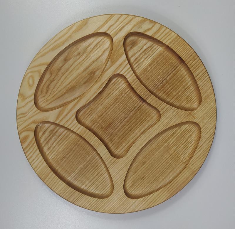 Доска менажница для подачи блюд на 5 секции ясень d 30 см, высота 2 см.