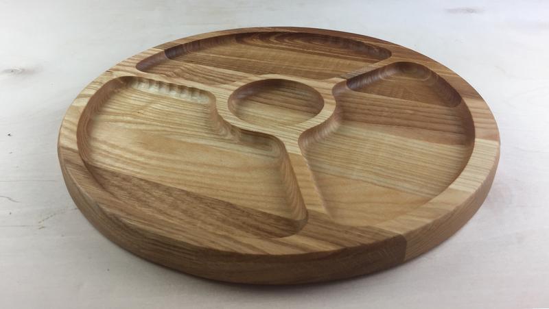 Доска менажница для подачи блюд на 4 секции дуб d 30 см, высота 2 см.
