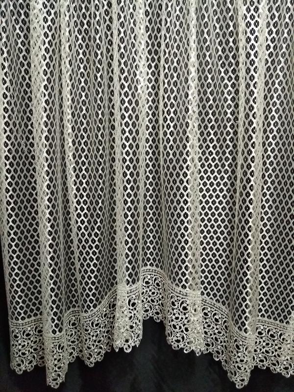 Готовая занавеска. Сетка молочного цвета. Украсит окно на кухне, на балконе, коридоре. Ширина по ленте 2,9 м. Высота по краям 1.75м, по центру 1.6м. Ширина кружева 0.30см. Возможен пошив по вашим размерам.
