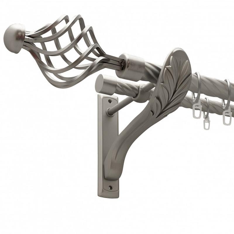 Карниз двойной 19-25мм в цвете сатин матовый,серый.В комплект входит, труба 25мм крученая и 19мм гладкая, держатели труб ретро,2заглушки на 19мм,2 Арезо или на Ваш выбор,кольца на трубу+крючки.Вы можете выбрать насадку другую,Можна комплектовать прищепками(зажимами) за дополнительную плату. Выбор за Вами.Обращайтесь по телефону,Вайбер . С уважением,Баваро.