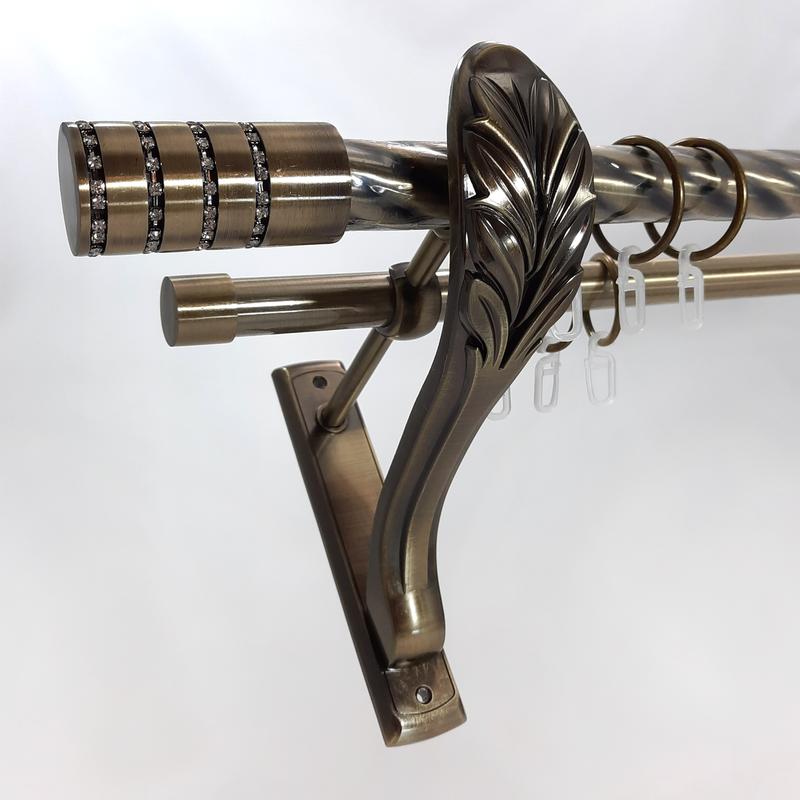 Карниз для штор orvit барамела металевий дворядний ретро кручена труба кільце металеве ант...