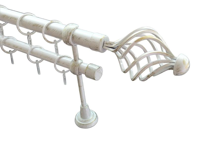 Карниз для штор orvit арезо металевий дворядний гладка труба кільце металеве біле золото 2...