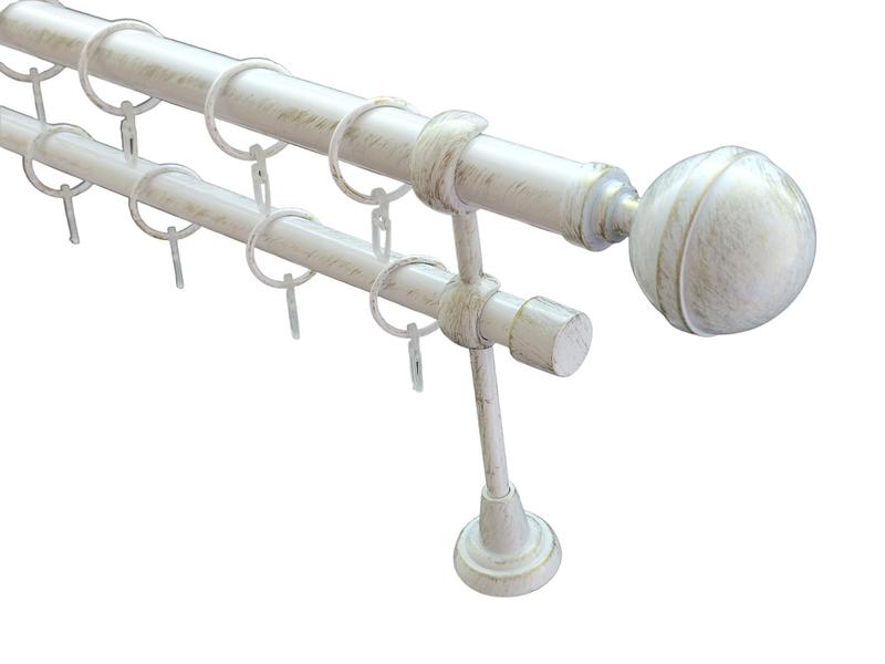 Карниз для штор orvit калісто металевий дворядний ретро гладка труба кільце біле золото 25...