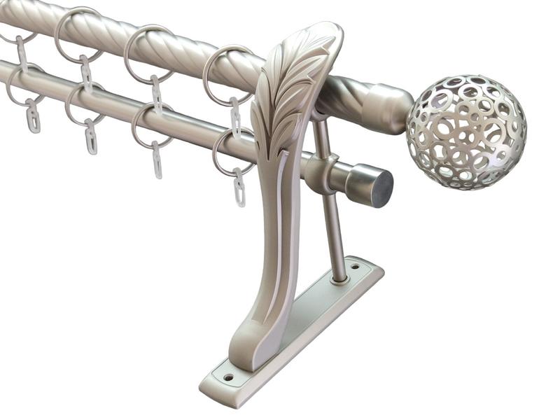 Карниз для штор orvit савонна металевий дворядний ретро кручена труба кільце металеве сати...