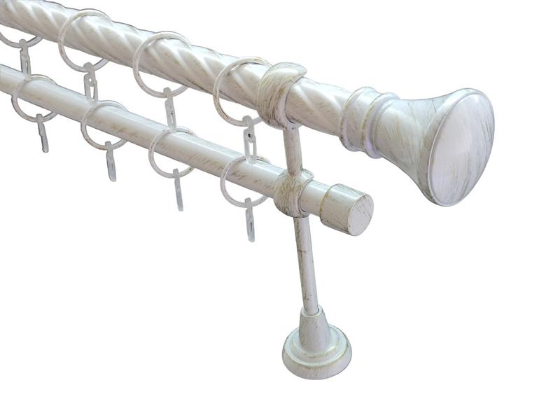 Карниз для штор orvit люксор металевий дворядний кручена труба кільце металеве біле золото...