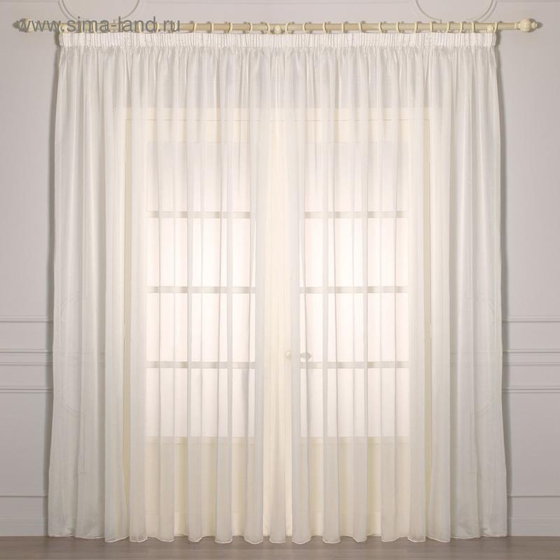 Тюль шифон вуаль молочный с пришитой тесьмой 500*280 см