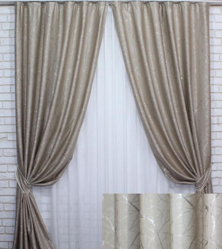 Комплект готових штор, з тканини льон блекаут рогожка, колекція "саванна". колір бежевий
