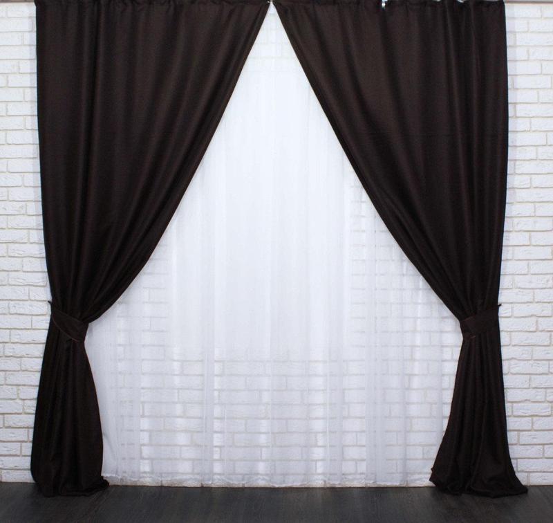 Комплект готових світлонепроникних штор, колекція блекаут "льон мешковина", колір венге....