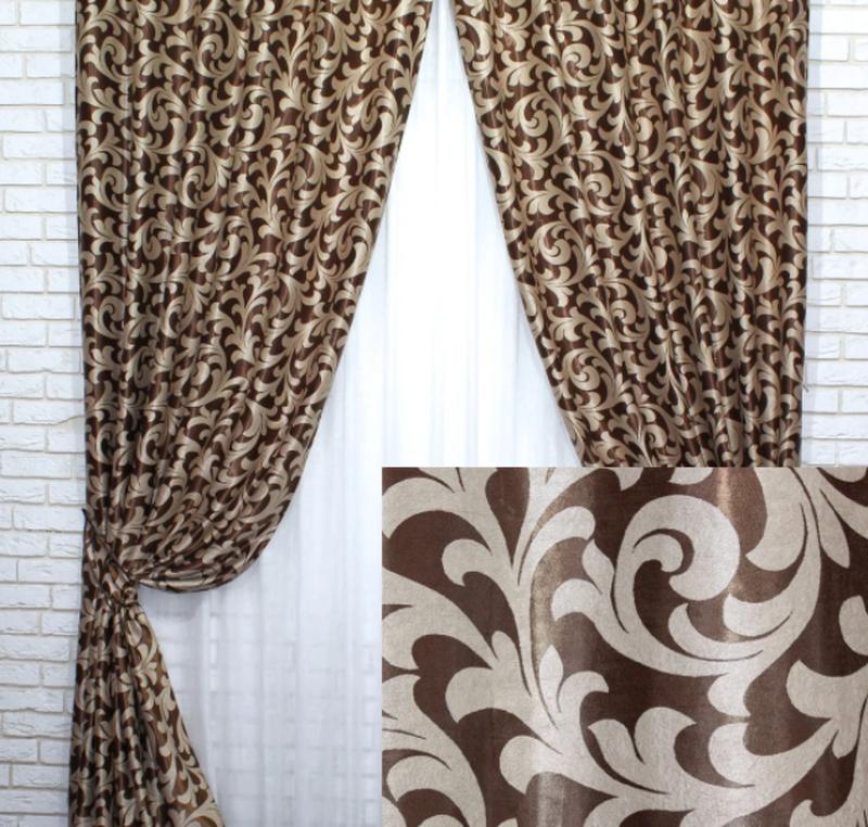 Штори (2шт. 1.5х2.7м) з тканини блекаут-софт, колекція "вензель". колір коричневий з бежев...