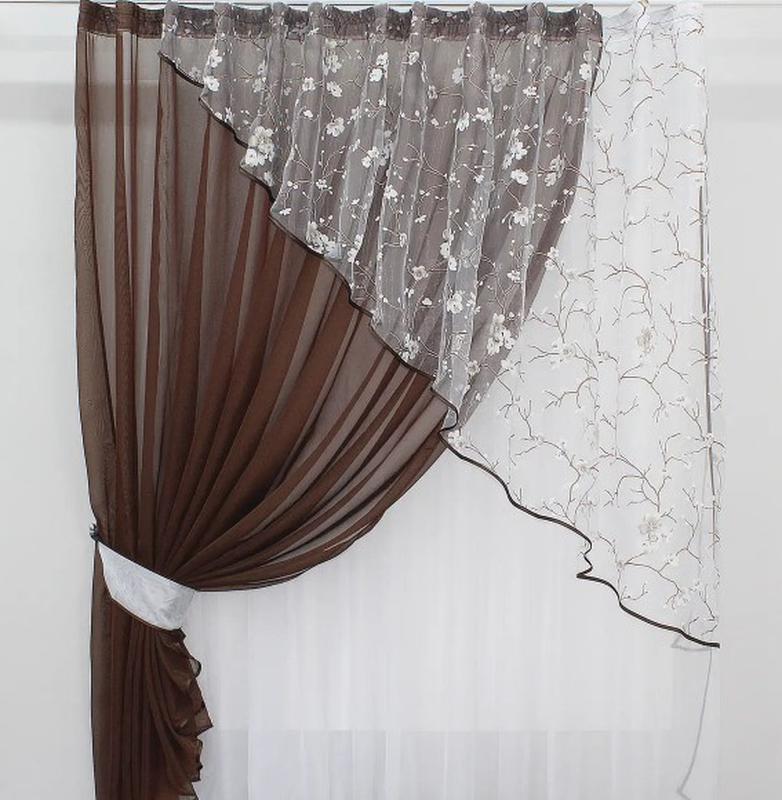 Кухонні шторки (300х170см) з підв'язками. колір венге з білим