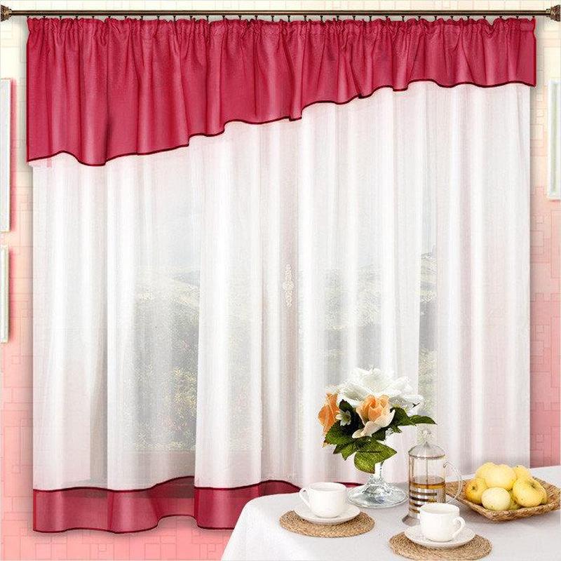 Тюль в кухню, красный с белым
