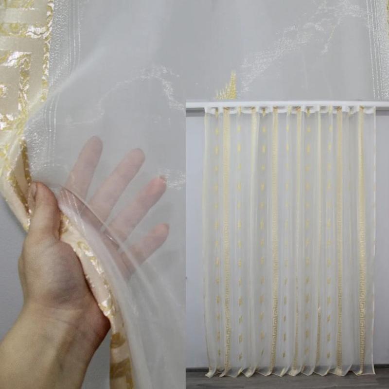 Тюль органза для зали. вітальні чи спальні з нейлоновою вишивкою. колір молочний з золотис...
