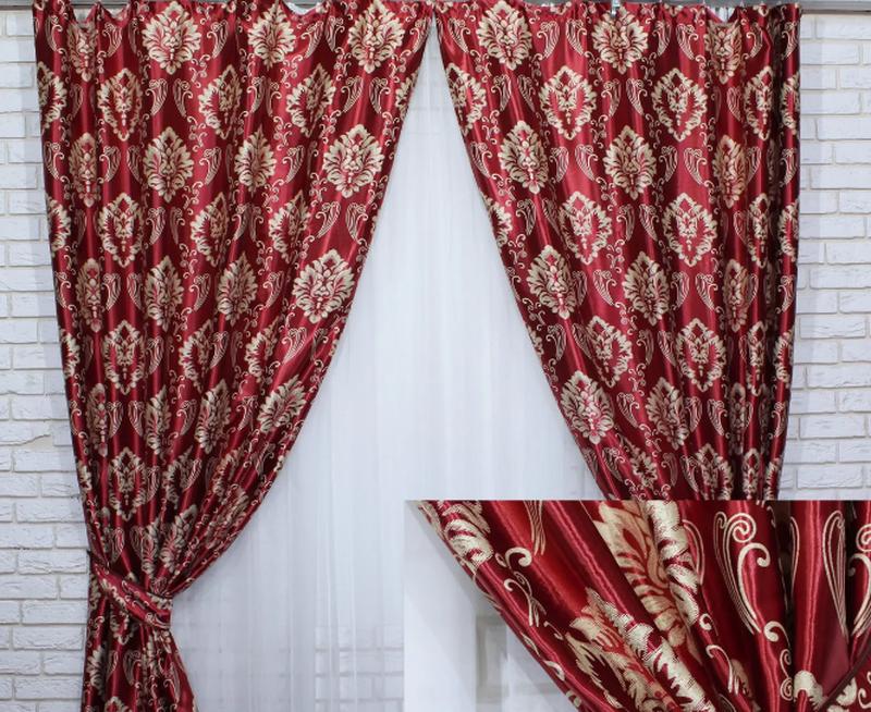 Ширина каждой шторы 1.5м, При необходимости мы можем пошить по ваших замерах; Ткань: блэкаут; Цвет: бордовый; Высота: 2.6 м Интернет магазин "Чемодан текстиля" предлагает большой выбор товаров по низкой цене. Вы можете перейти по ссылке на наш сайт и посмотреть весь ассортимент наших товаров ************************** Если вам нравится эта модель, но нужно другие размеры или цвет, обращайтесь по телефонам: +38********** или **********.