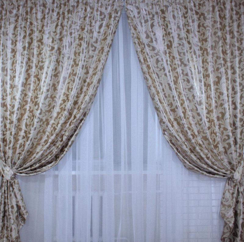 Комплект готовых штор блэкаут "вензель" двусторонний. цвет кофейный