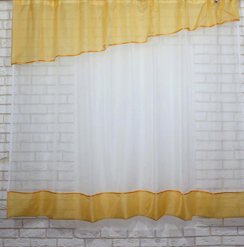 Комплект выполнен из двух цветов шифона, благодаря этому достаточно легкая и износостойкая текстура ткани проста в уходе и часто используется в пошиве. Благодаря своей форме она подойдет практически на любое окно. Данная модель так же отлично подойдет для Вашей кухни, на балкон, а также на любое другое окно. Ширина в растянутом виде 2.8 м. Длина 1.7 м. К комплекту пришита тесьма с петельками. Ткань - шифон. Интернет магазин "Чемодан текстиля" предлагает большой выбор товаров по низкой цене. Вы можете перейти по ссылке на наш сайт и посмотреть весь ассортимент наших товаров ************************** Если вам нравится эта модель, но нужно другие размеры или цвет, обращайтесь по телефону: +38********** или ********** каждый день.