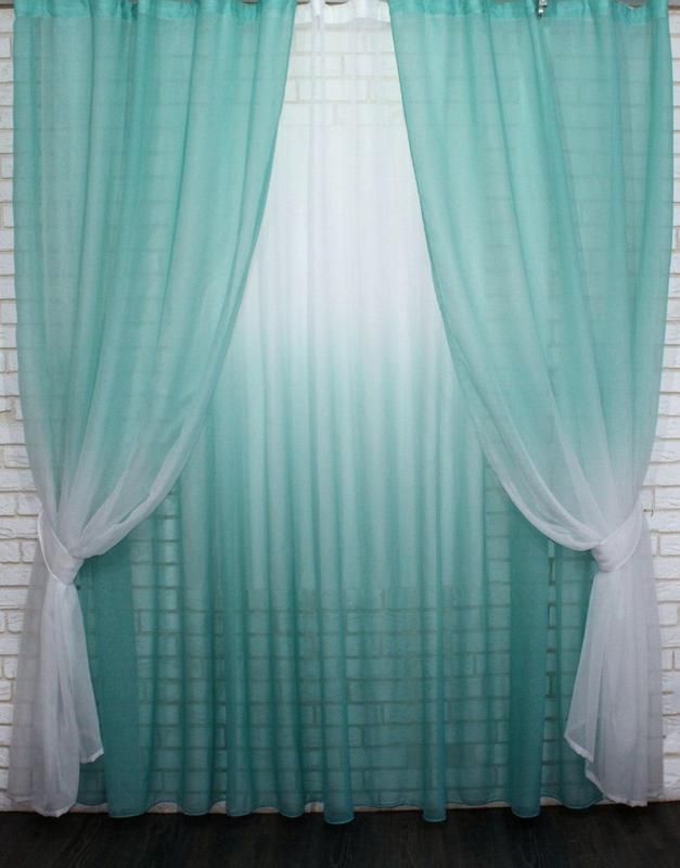 Комплект растяжка "омбре", ткань батист, под лен, цвет бирюзовый с белым