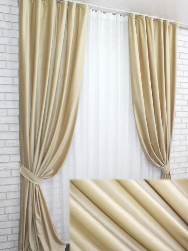 Комплект штор із тканини оксамит (бархат). колір бежевий
