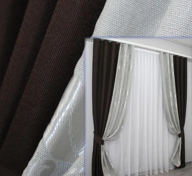 Комбіновані (2шт. 1,5х2,7м) штори з тканини льон. колір венге з сірим