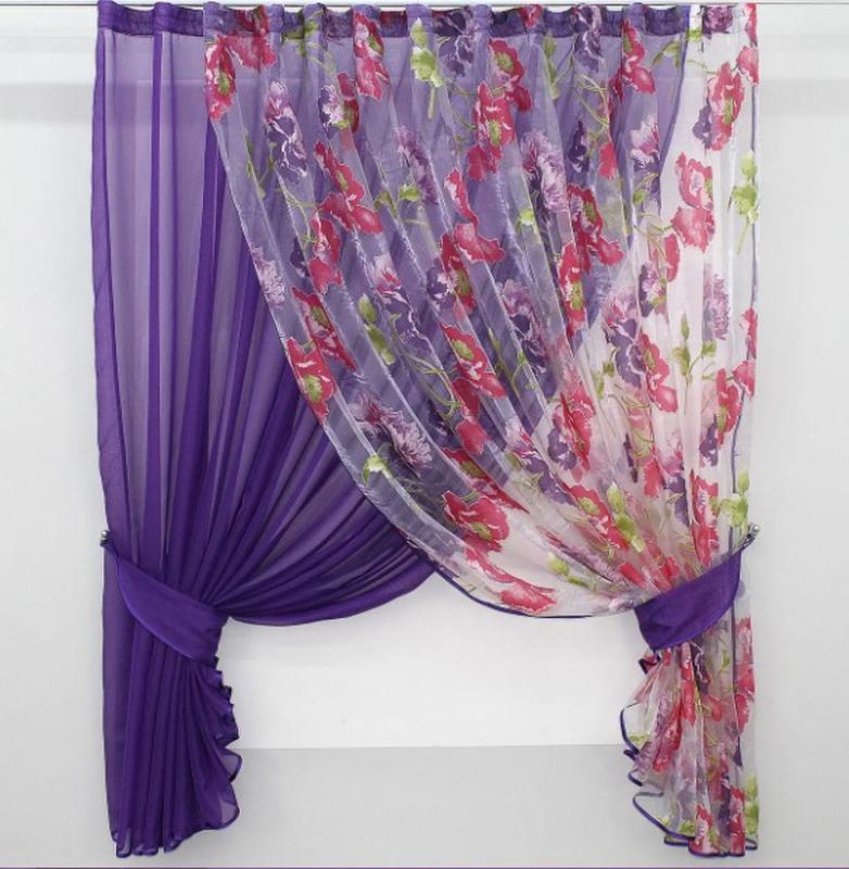 Комплект штор з підв'язками 320х170см "дует". колір фіолетовий з квітковим принтом
