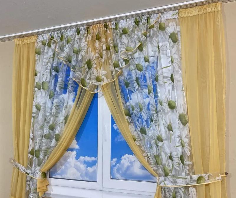 Фіранки підійдуть як на кухонне вікно, балкон, або в інше приміщення де потрібно не велика висота. Тканина, яка використовується в комплекті добре стирається, не линяє, і прослужить досить довго. Підійде на карниз 2 м. Ширина в розтягнутому вигляді 4 м. Довжина 1.7 м. До комплекту пришита тасьма з петельками. Тканина: шифон та органза. Інтернет магазин "Чемодан текстилю" пропонує великий вибір товарів за низькою ціною. Ви можете перейти по посиланню на наш сайт і подивитися весь асортимент наших товарів ************************** Якщо вам подобається ця модель, але потрібно інші розміри або колір, звертайтеся за телефонами: +38********** або **********, кожен день.
