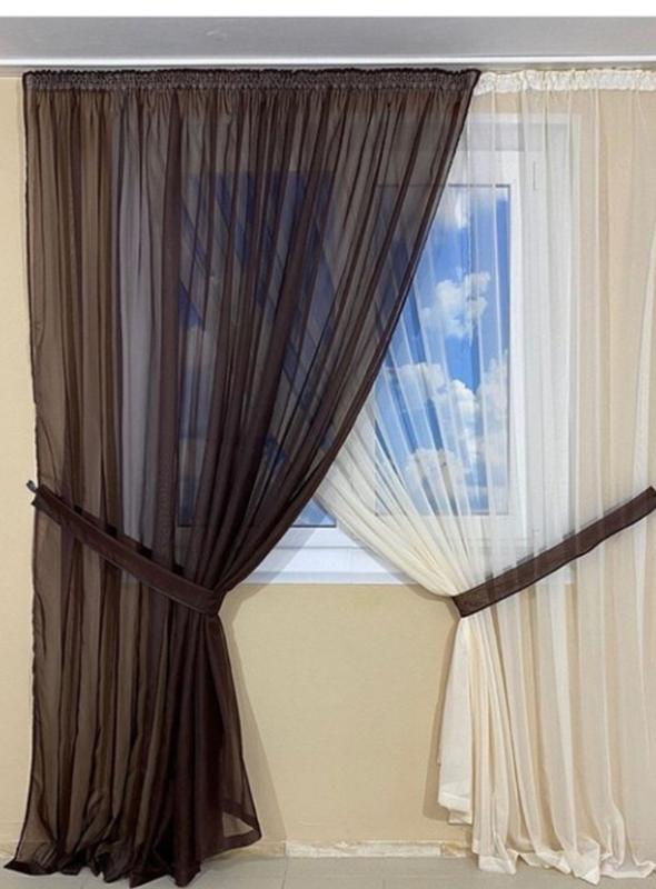 Высота Высоту сделаем по вашему размеру, но не более чем 2,9м. Ширина каждой шторки По умолчанию ширина каждой шторы по 3м Способ подвеса, крепления Пришита широкая тесьма с петельками. Ткань Шифон Цвет Нужный вам цвет можно выбрать в палитре. Цена от замены цвета не меняется. Тип ткани Легкая, полупрозрачная. В комплект входит Портьеры 2шт., подвязки 2шт Интернет магазин "Чемодан текстиля" предлагает большой выбор товаров по низкой цене. Вы можете перейти по ссылке на наш сайт и посмотреть весь ассортимент наших товаров ************************** Если вам нравится эта модель, но нужно другие размеры или цвет, обращайтесь по телефонам: +38********** или **********.