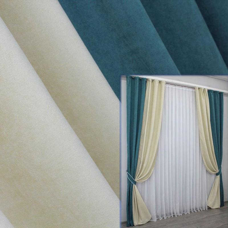 Комбіновані (2шт. 1,5х2,7м) штори з мікровелюру. колір бірюзовий з молочним 014дк (841ш і...