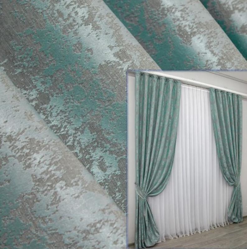 Комплект готових штор із жакарду, колекція "sultan хо" туреччина. колір бірюзово-сірий